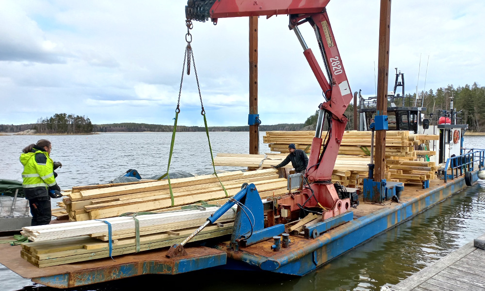 Esim. mökki- ja muita pientalopaketteja, puutavaraa, betonin suursäkkejä, hiekkaa, multaa, koneita ym.